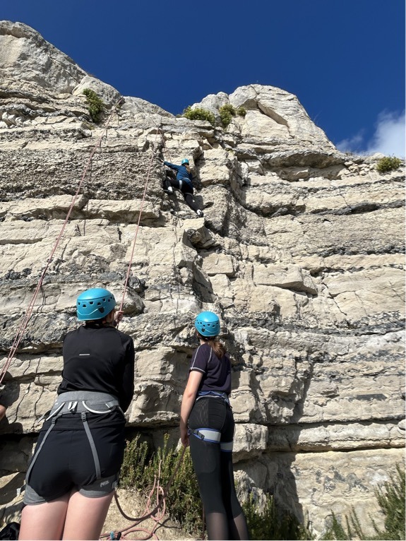 For many, it was a first experience of outdoor climbing. Some approached the rock with confidence, while others pushed through nerves to reach the top. The session ended with an abseil down the cliff face and a climb back up, giving the group a taste of rope work from both perspectives. The day closed with a pub meal and campfire, and time to reflect on the challenges and achievements of the day.